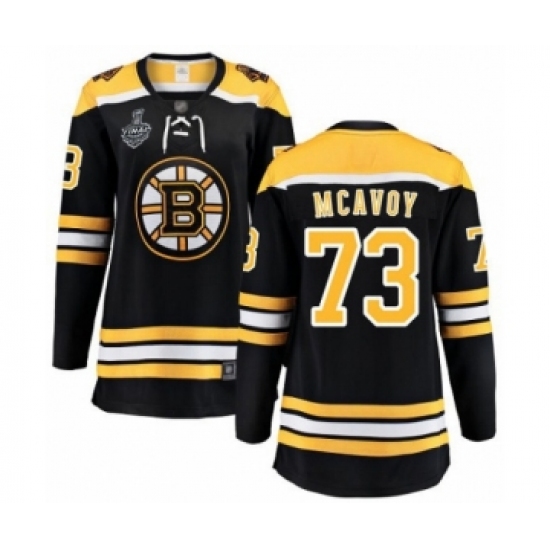 >Women's Boston Bruins #73 Charlie McAvoy Authentic Black Home Fanatics Branded Breakaway 2019 Stanley Cup Final Bound Hockey Jersey