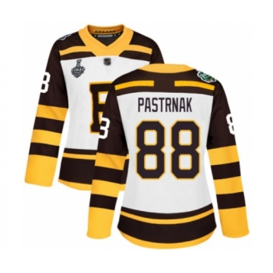 Women's Boston Bruins #88 David Pastrnak Authentic White Winter Classic 2019 Stanley Cup Final Bound Hockey Jersey