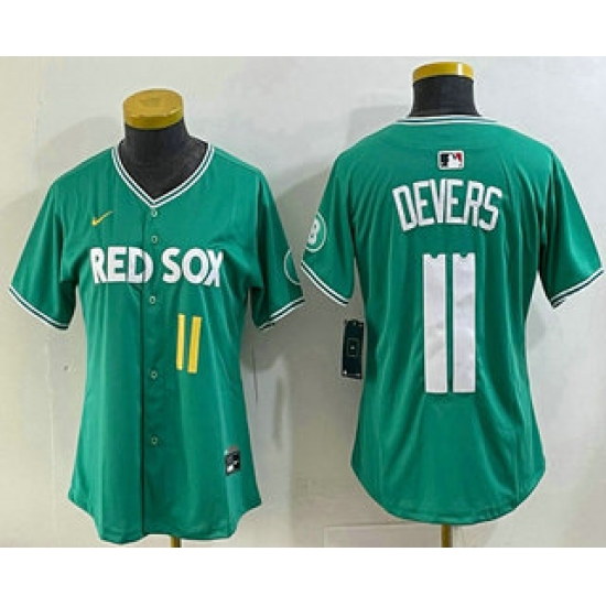 Women's Boston Red Sox #11 Rafael Devers Green 2025 City Connect Player Name Limited Jersey