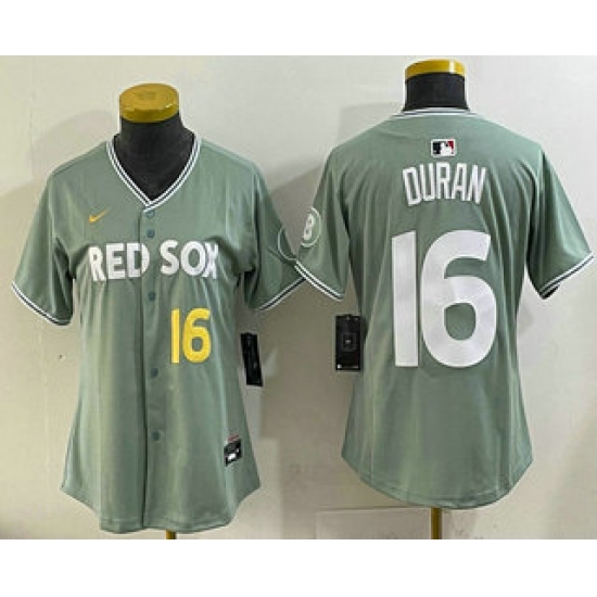 >Women's Boston Red Sox #16 Jarren Duran Light Green 2025 City Connect Player Name Limited Jersey