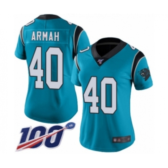 >Women's Carolina Panthers #40 Alex Armah Limited Blue Rush Vapor Untouchable 100th Season Football Jersey