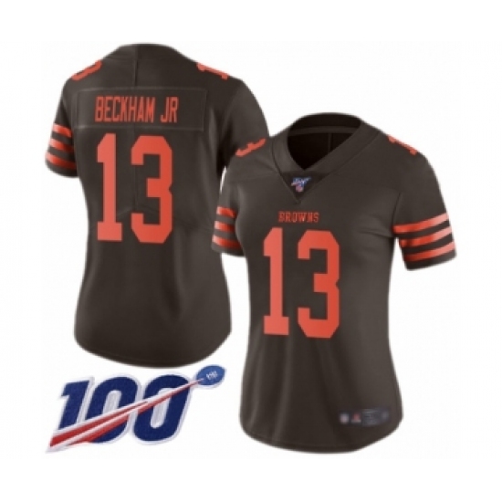 Women's Cleveland Browns #13 Odell Beckham Jr. Limited 100th Season Brown Rush Vapor Untouchable Football Jersey