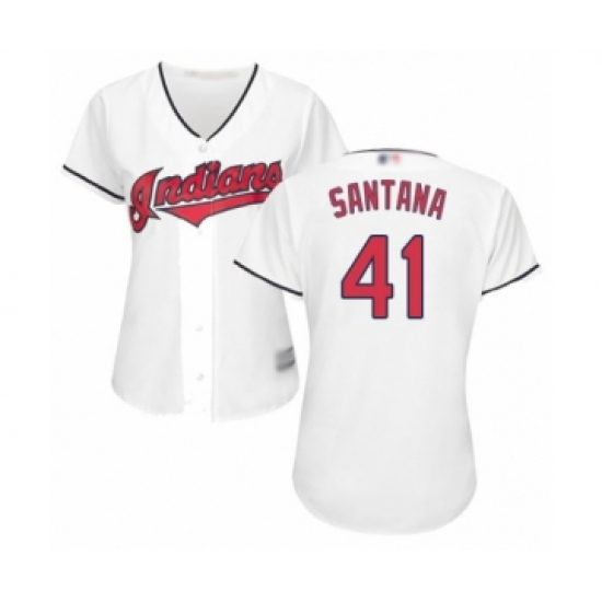 Women's Cleveland Indians #41 Carlos Santana Authentic White Home Cool Base Baseball Jersey