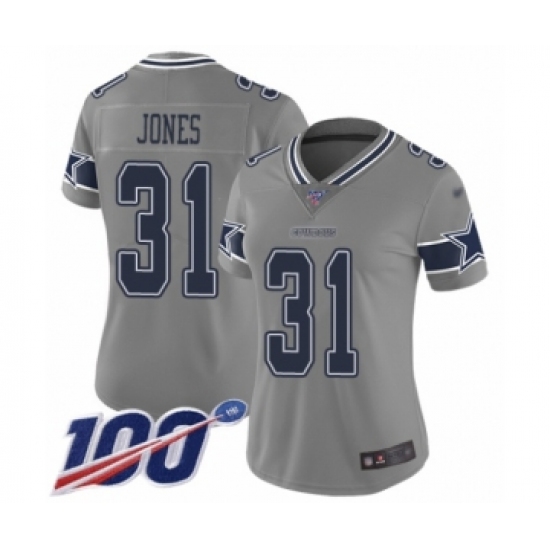 Women's Dallas Cowboys #31 Byron Jones Limited Gray Inverted Legend 100th Season Football Jersey