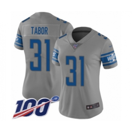 >Women's Detroit Lions #31 Teez Tabor Limited Gray Inverted Legend 100th Season Football Jersey