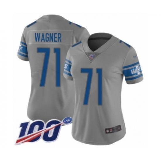 >Women's Detroit Lions #71 Ricky Wagner Limited Gray Inverted Legend 100th Season Football Jersey