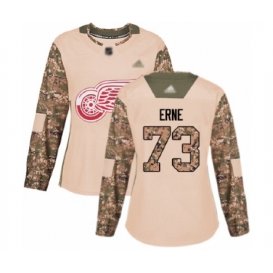 Women's Detroit Red Wings #73 Adam Erne Authentic Camo Veterans Day Practice Hockey Jersey