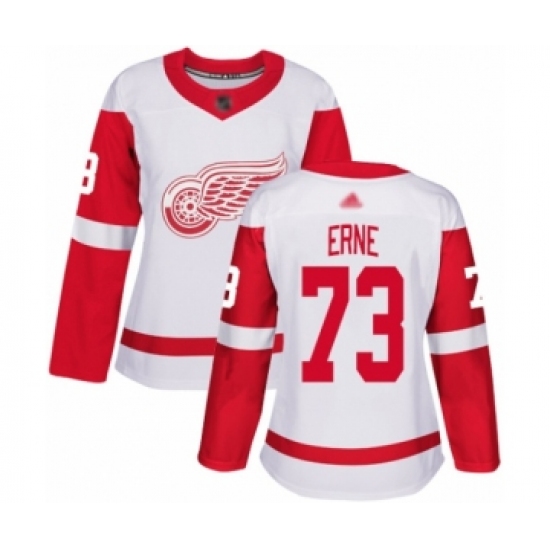 >Women's Detroit Red Wings #73 Adam Erne Authentic White Away Hockey Jersey