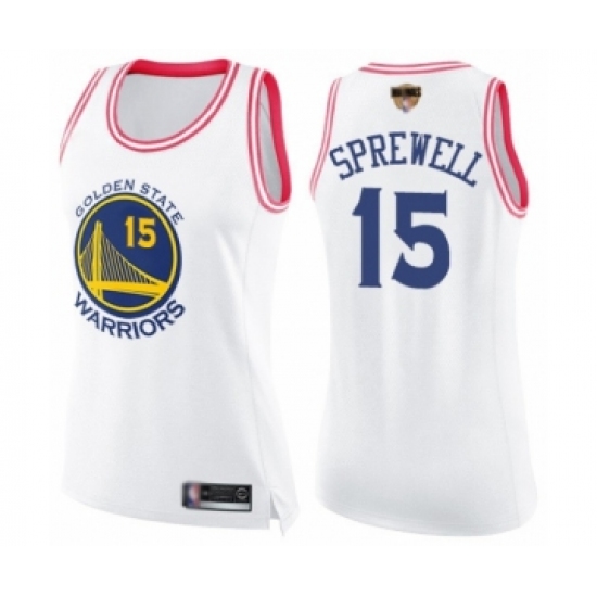Women's Golden State Warriors #15 Latrell Sprewell Swingman White Pink Fashion 2019 Basketball Finals Bound Basketball Jersey
