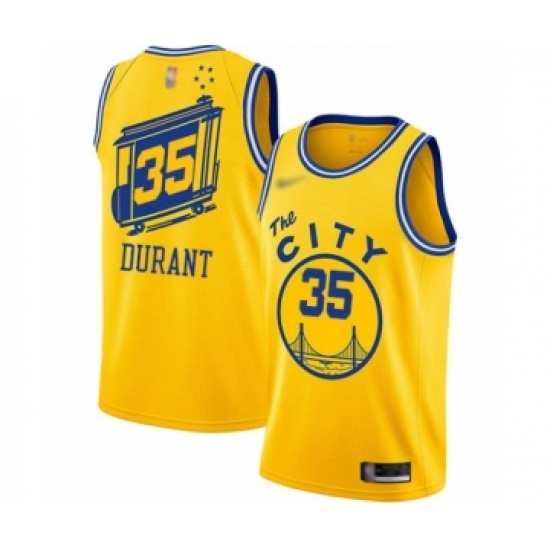 Men's Golden State Warriors #35 Kevin Durant Authentic Gold Hardwood Classics Basketball Jersey - The City Classic Edition