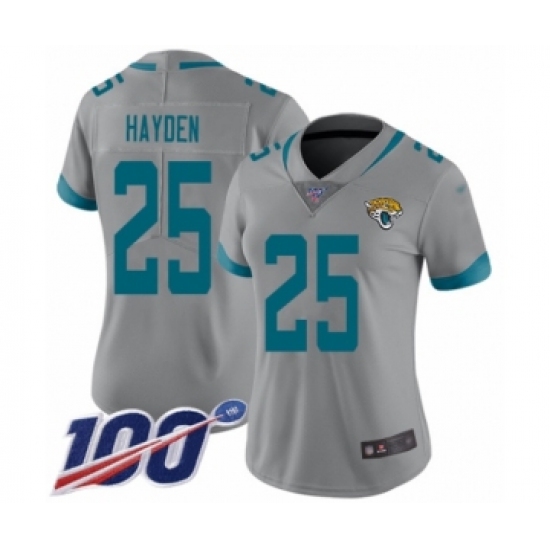 Women's Jacksonville Jaguars #25 D.J. Hayden Silver Inverted Legend Limited 100th Season Football Jersey