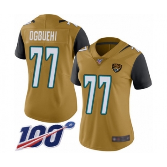 >Women's Jacksonville Jaguars #77 Cedric Ogbuehi Limited Gold Rush Vapor Untouchable 100th Season Football Jersey