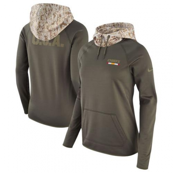 >Women's Kansas City Chiefs Nike Olive Salute to Service Performance Pullover Hoodie