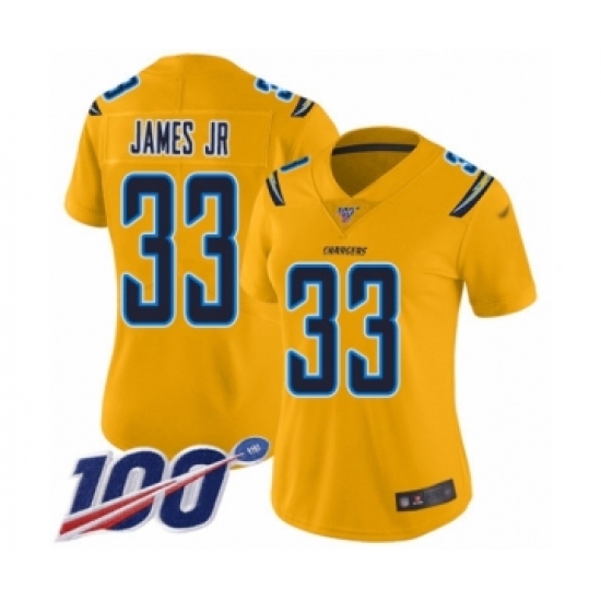 Women's Los Angeles Chargers #33 Derwin James Limited Gold Inverted Legend 100th Season Football Jersey