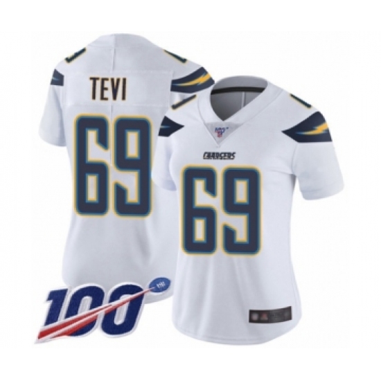 >Women's Los Angeles Chargers #69 Sam Tevi White Vapor Untouchable Limited Player 100th Season Football Jersey