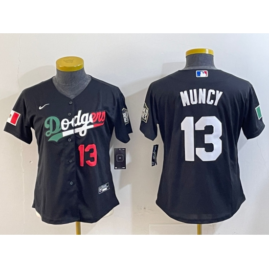 >Women's Los Angeles Dodgers #13 Max Muncy Number Black Mexico 2020 World Series Cool Base Nike Jersey