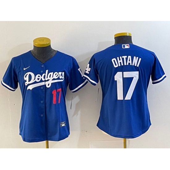 Women's Los Angeles Dodgers #17 Shohei Ohtani Number Blue Stitched Cool Base Nike Jersey