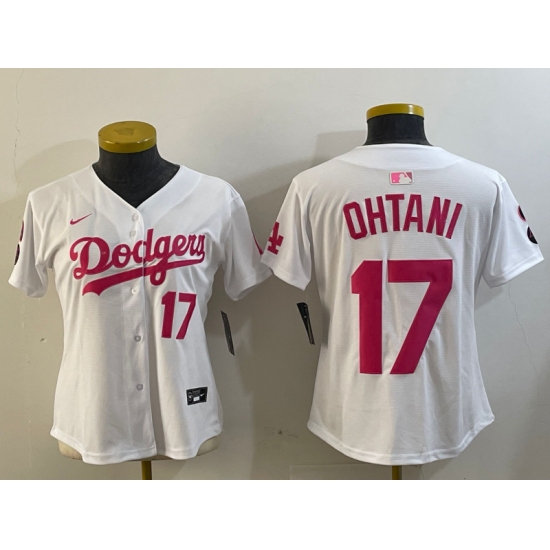 Women's Los Angeles Dodgers #17 Shohei Ohtani Number White Pink With Limited Stitched Jersey