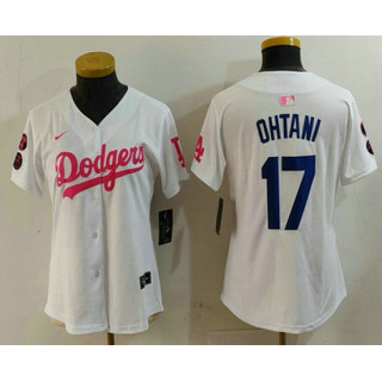 >Women's Los Angeles Dodgers #17 Shohei Ohtani White Pink With Limited Stitched Jersey