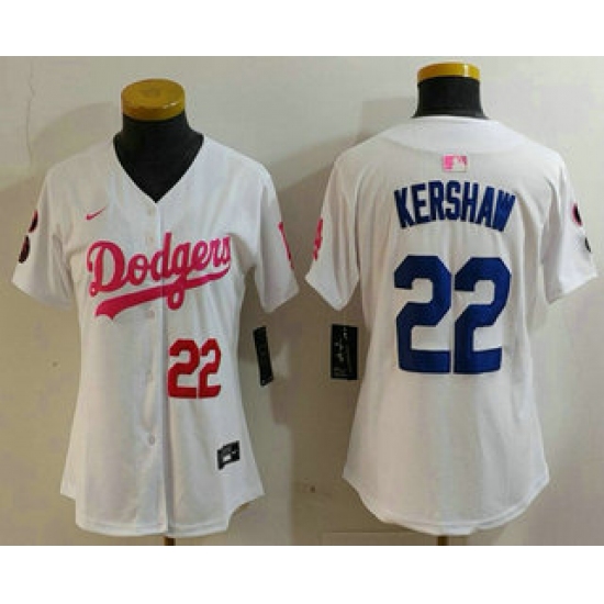Women's Los Angeles Dodgers #22 Clayton Kershaw Number White Pink With Limited Stitched Jersey