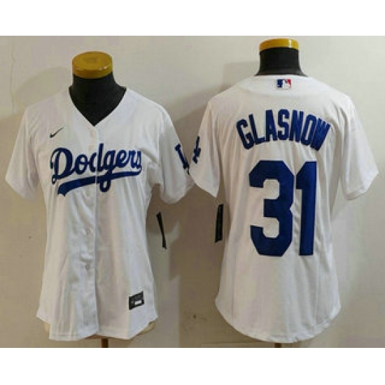 >Women's Los Angeles Dodgers #31 Tyler Glasnow White Stitched Cool Base Nike Jersey
