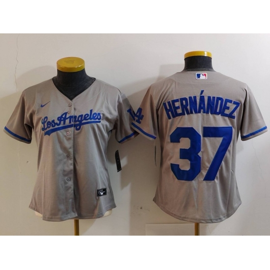 Women's Los Angeles Dodgers #37 Teoscar Hernandez Grey With Los Cool Base Stitched Jersey