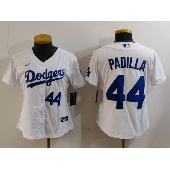 Women's Los Angeles Dodgers #44 Vicente Padilla Number White Cool Base Stitched Jerseys
