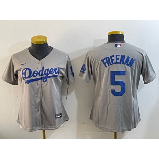 Women's Los Angeles Dodgers #5 Freddie Freeman Grey Cool Base Stitched Jersey