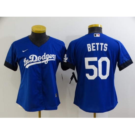 >Women's Los Angeles Dodgers #50 Mookie Betts Blue City Player Jersey