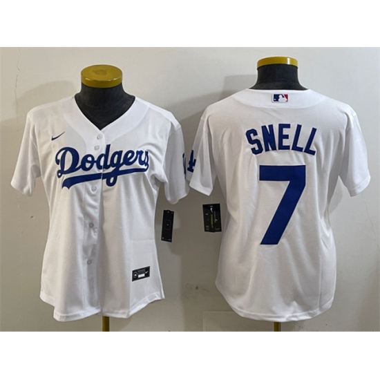>Women's Los Angeles Dodgers #7 Blake Snell White Cool Base Stitched Baseball Jersey(Run Small)
