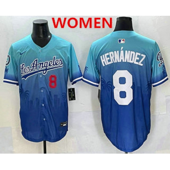 >Women's Los Angeles Dodgers #8 Enrique Hernandez Blue 2025 City Connect Limited Stitched Jersey