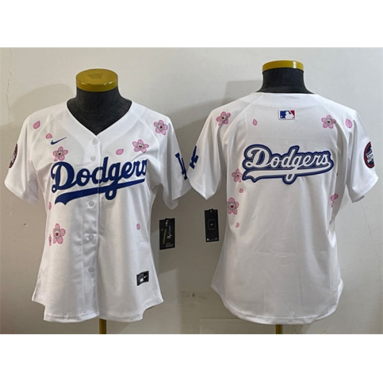 >Women's Los Angeles Dodgers Team Big Logo White 2025 Tokyo Series Limited Stitched Baseball Jersey(Run Small)