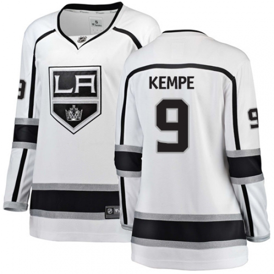 Home>NHL>Los Angeles Kings>Adrian Kempe>Women's Los Angeles Kings #9 Adrian Kempe Authentic White Away Fanatics Branded Breakaway NHL Jersey