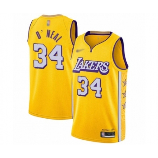 >Women's Los Angeles Lakers #34 Shaquille O'Neal Swingman Gold Basketball Jersey - 2019 20 City Edition