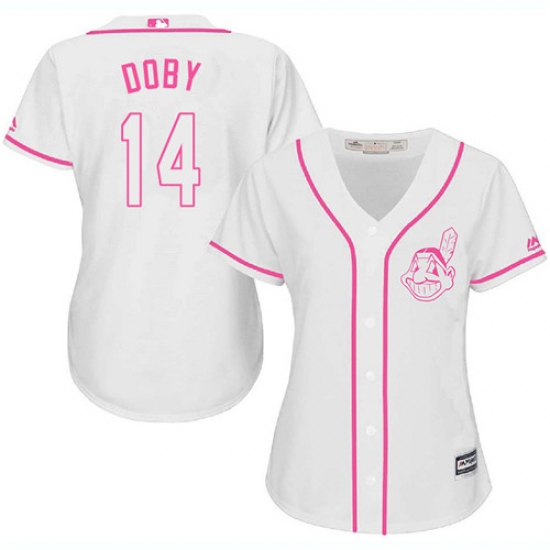 Home>MLB>Cleveland Indians>Larry Doby>Women's Majestic Cleveland Indians #14 Larry Doby Replica White Fashion Cool Base MLB Jersey