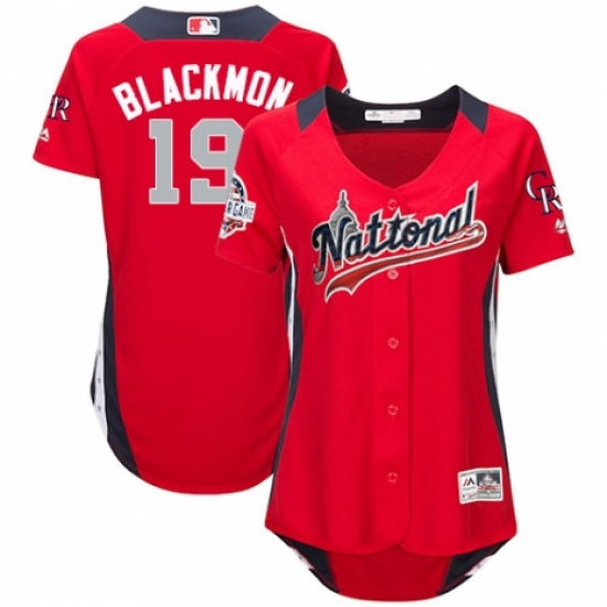 >Women's Majestic Colorado Rockies #19 Charlie Blackmon Game Red National League 2018 MLB All-Star MLB Jersey
