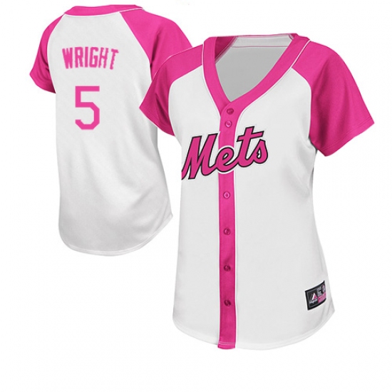 Women's Majestic New York Mets #5 David Wright Replica White/Pink Splash Fashion MLB Jersey