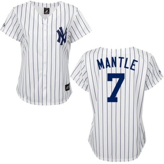 Women's Majestic New York Yankees #7 Mickey Mantle Replica White/Black Strip MLB Jersey