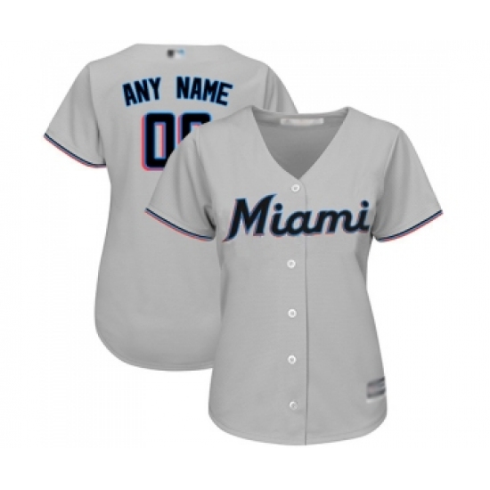 Women's Miami Marlins Customized Replica Grey Road Cool Base Baseball Jersey