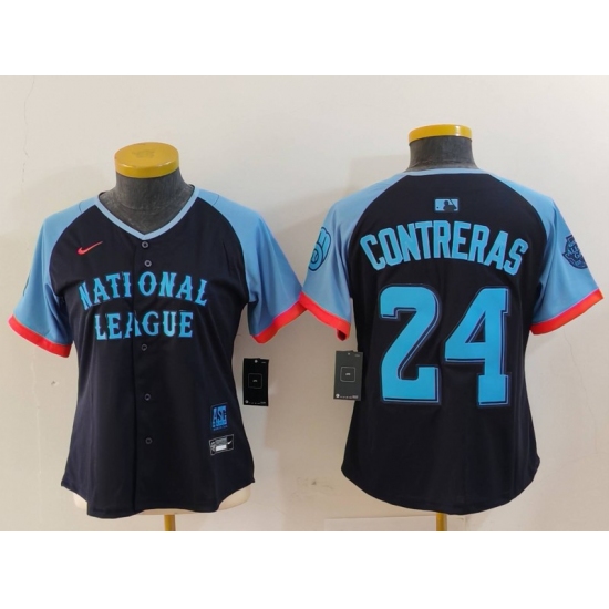 >Women's Milwaukee Brewers #24 William Contreras Navy 2024 All Star Limited Stitched Jersey