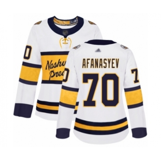 >Women's Nashville Predators #70 Egor Afanasyev Authentic White 2020 Winter Classic Hockey Jersey