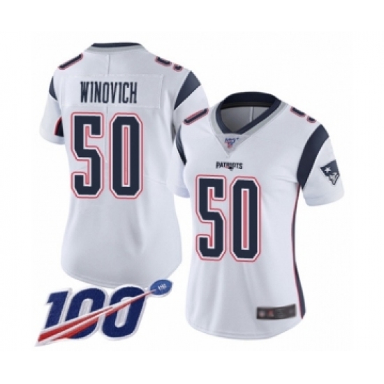 Women's New England Patriots #50 Chase Winovich White Vapor Untouchable Limited Player 100th Season Football Jersey