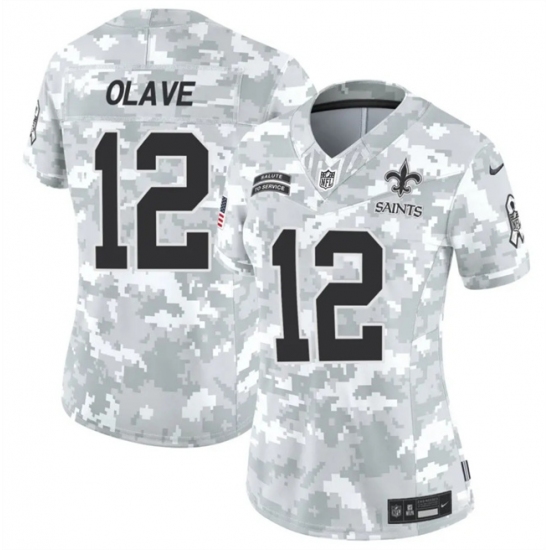 >Women's New Orleans Saints #12 Chris Olave 2024 F.U.S.E Arctic Camo Salute To Service Limited Stitched Football Jersey(Run Small)