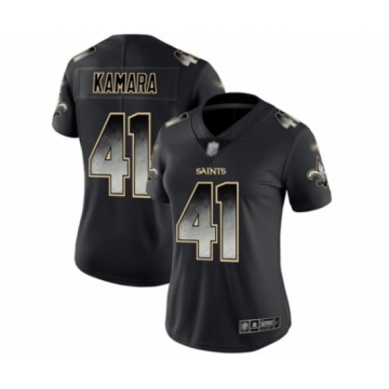 >Women's New Orleans Saints #41 Alvin Kamara Limited Black Smoke Fashion Football Jersey