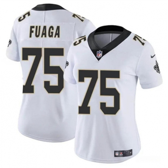 >Women's New Orleans Saints #75 Taliese Fuaga White 2024 Draft Vapor Stitched Game Jersey(Run Small)