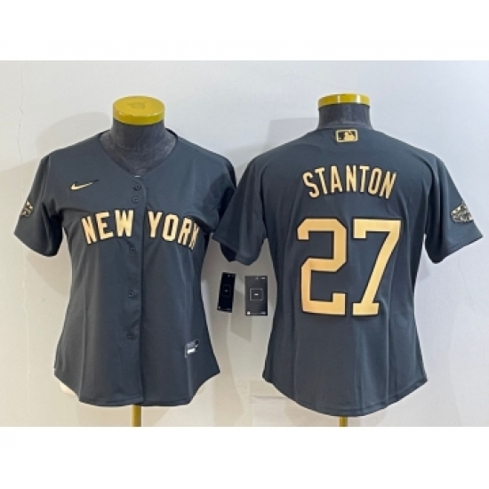 >Women's New York Yankees #27 Giancarlo Stanton Grey 2022 All Star Stitched Cool Base Nike Jersey