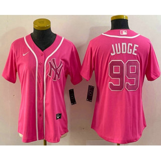 >Women's New York Yankees #99 Aaron Judge Pink Cool Base Stitched Baseball Jersey