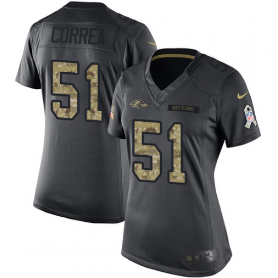 Home>NFL>Baltimore Ravens>Kamalei Correa>Women's Nike Baltimore Ravens #51 Kamalei Correa Limited Black 2016 Salute to Service NFL Jersey