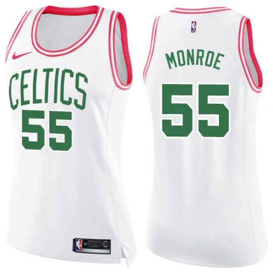 Home>NBA>Boston Celtics>Greg Monroe>Women's Nike Boston Celtics #55 Greg Monroe Swingman White/Pink Fashion NBA Jersey