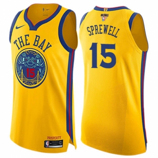 Women's Nike Golden State Warriors #15 Latrell Sprewell Swingman Gold 2018 NBA Finals Bound NBA Jersey - City Edition